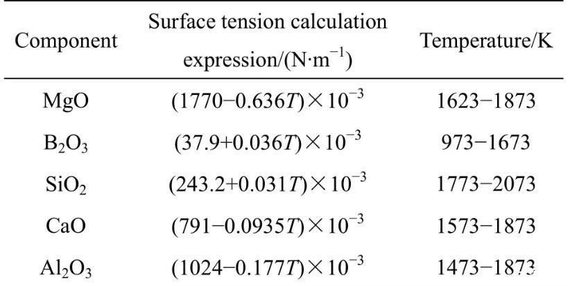熱力學模型計算MgO-B2O3-SiO2-CaOAl2O3富硼渣表面張力(一)