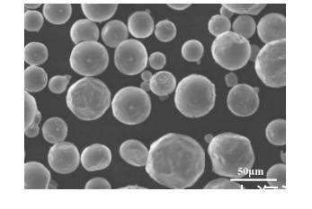 采用掃描電子顯微鏡對實施例1所制備的霧化粉體進(jìn)行形貌表征,結(jié)果如圖1所示。從圖1可以看出,霧化粉體的粒徑較小,較多的粒徑在50μm左右,在霧化粉體表面粘合有金屬摻雜劑。