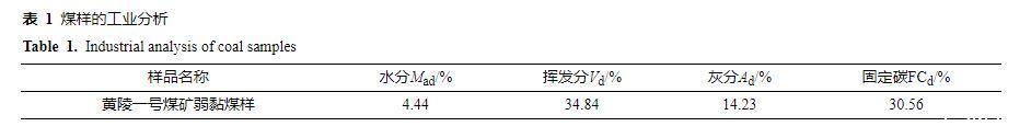 將EMI原液稀釋至質(zhì)量分?jǐn)?shù)分別為0.1%、0.2%、0.4%、0.6%、0.8%、1.0%、2.0%、4.0%、6.0%、8.0%的混合溶液。實驗煤樣選取黃陵一號煤礦弱黏煤樣,煤樣工業(yè)分析結(jié)果見表1。在制備煤塵樣品時,根據(jù)有關(guān)文獻(xiàn)對黃陵一號煤礦綜采工作面煤塵粒徑分布進(jìn)行檢測,并結(jié)合國際標(biāo)準(zhǔn)化組織對粉塵粒徑的定義,以及實驗室制備條件,去除煤塊外表皮,使用破碎機(jī)對煤心破碎60 s,用160、200、300、400目標(biāo)準(zhǔn)工業(yè)篩對煤粉進(jìn)行篩分,共篩分出0.075~0.096、0.048~<0.075、0.038~<0.048、<0.038 mm共4個粒度范圍的樣品進(jìn)行實驗,其中煤塵粒徑與煤樣編號見表2。煤樣制備完成后,將其放入80℃的真空干燥箱,真空干燥8 h后密封保存以備實驗使用。