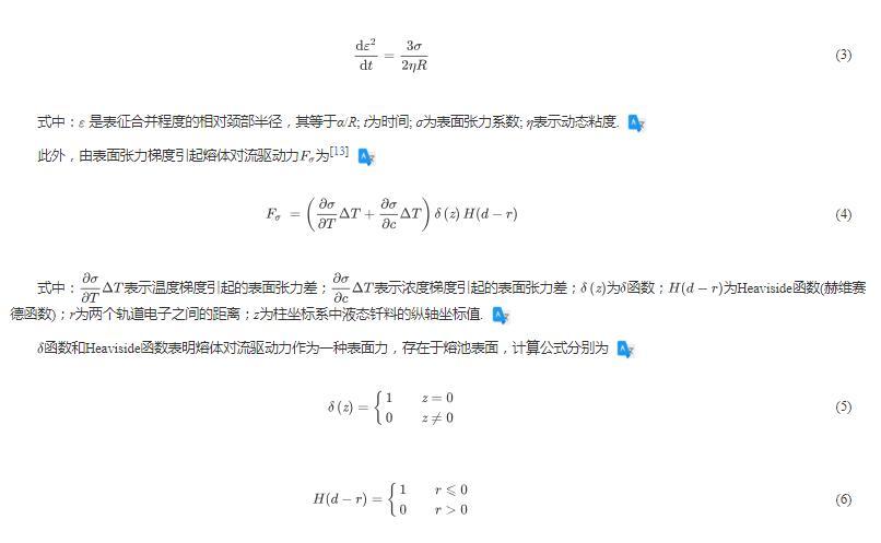 函數和Heaviside函數表明熔體對流驅動力作為一種表面力,存在于熔池表面,計算公式分別為