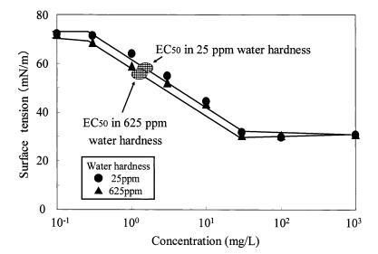 圖 9 水硬度對(duì)表面張力的影響 烷基硫酸鹽和有毒表面張力曲線 Daphnia Magna 的價(jià)值。