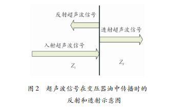 圖2超聲波信號在變壓器油中傳播時的反射和透射示意圖