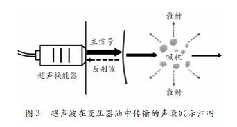 圖3超聲波在變壓器油中傳輸?shù)穆曀p示意圖