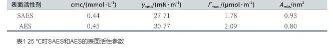 表1 25℃時SAES和AES的表面活性參數(shù)