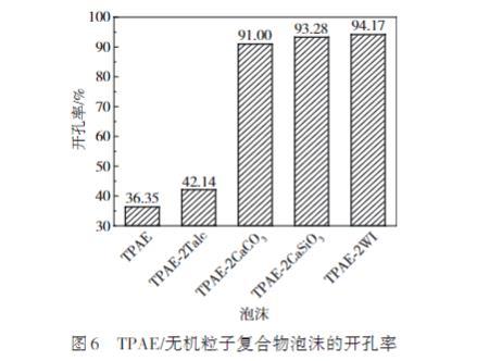 圖6 TPAE/無機(jī)粒子復(fù)合物泡沫的開孔率