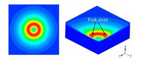 電弧剪切應(yīng)力的存在是由于電弧等離子體中既有動(dòng)能又有動(dòng)量。當(dāng)電弧等離子體從熔池中心撞擊熔池時(shí),熔池表面會(huì)受到向外的剪切應(yīng)力。類似于表面張力,熔池表面的剪切應(yīng)力促使液態(tài)金屬向外流動(dòng)。它通常在靜止焊接或低速焊接過(guò)程中呈軸對(duì)稱分布,如圖3所示,從電弧中心到邊界,電弧剪切應(yīng)力先急劇增加后減小。在高焊接速度下,電弧沿焊接方向變形,產(chǎn)生非軸對(duì)稱分布的電弧剪切應(yīng)力,此時(shí)可以假設(shè)電弧剪切應(yīng)力分布在一個(gè)雙橢圓區(qū)域。