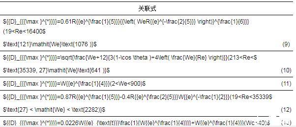 最大鋪展直徑Dmax是液滴撞擊固體表面過(guò)程中的重要參數(shù),定義相應(yīng)的液滴最大無(wú)量綱鋪展因子如式(8)所示