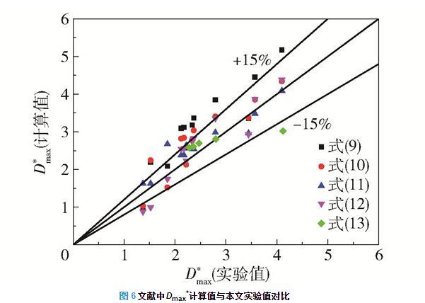圖6文獻(xiàn)中Dmax*計(jì)算值與本文實(shí)驗(yàn)值對(duì)比