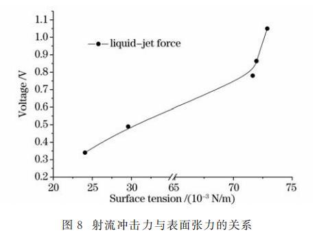 圖8射流沖擊力與表面張力的關系