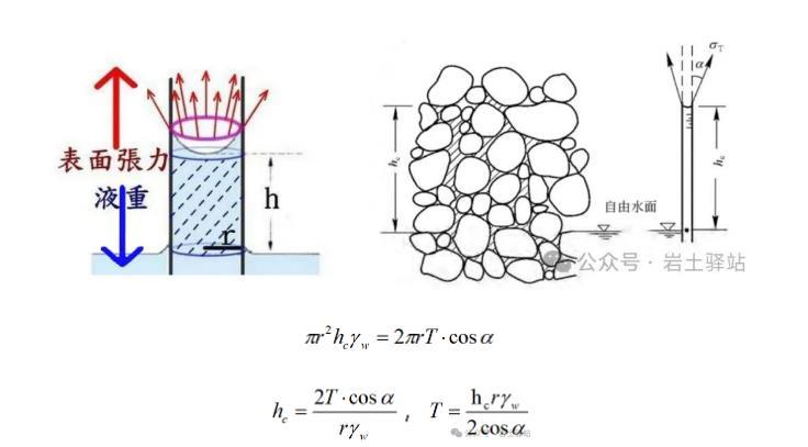 r為毛細管半徑;γw為水的重度。毛細水高hc與毛細管半徑r成反比。土顆粒的直徑愈小,孔隙直徑 (就是毛細管的直徑)愈細,則毛細水的高度愈大。