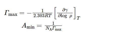 通過(guò)鉑環(huán)法在室溫下進(jìn)行表面張力測(cè)定,參考GB/T 5549-2010。繪制出表面張力-濃度對(duì)數(shù)(γ-lg c)曲線(xiàn)。使用公式(1)和(2)對(duì)飽和吸附量(Гmax)和單個(gè)分子占據(jù)最小表面積(Amin)進(jìn)行計(jì)算。