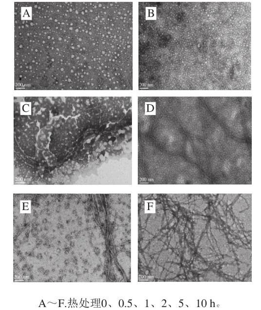 圖2加熱不同時間形成的β-乳球蛋白納米纖維的透射電子顯微鏡圖