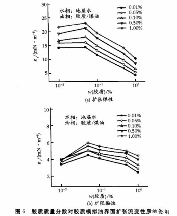 圖6膠質質量分數對膠質模擬油界面擴張流變性質的影響