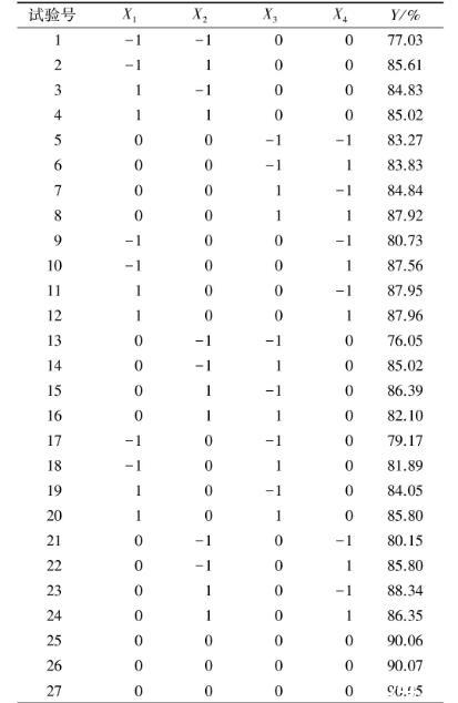 2.2.1響應(yīng)面試驗設(shè)計及結(jié)果