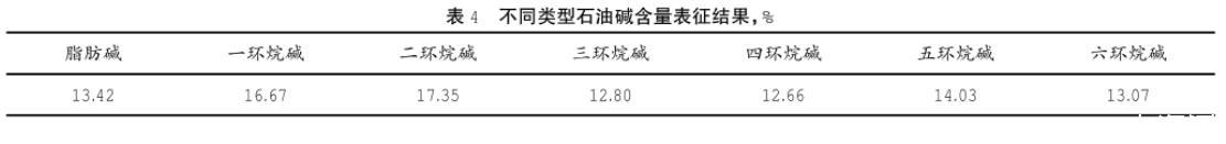 (2)萃出石油堿組分含量為4.46%,相對分子質量主要分布在300~700,碳數對應C21~C49,結構以環烷堿為主;