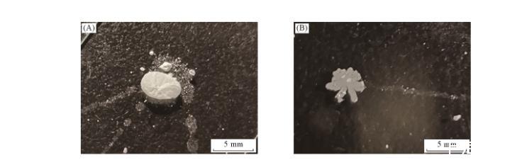 在顆粒參與形成“泡沫”過程中,存在另外一種現象(見圖8)。在磷酸三甲酚酯溶液中,顆粒附著在液氣表面上,有可能形成氣相為連續相、液相為非連續相的狀態[圖8(A)]。在無外力作用下,該液滴能夠保持長時間穩定。如果推動液滴,顆粒從氣液表面脫落[圖8(B)],則液滴破碎,留下一層顆粒組成的薄膜。