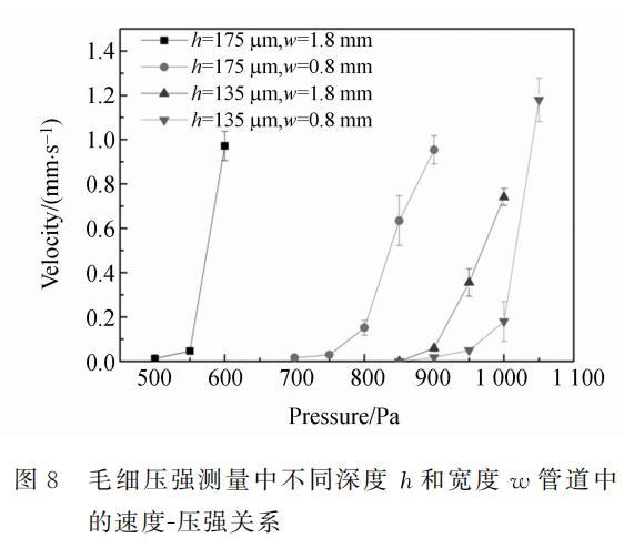 實(shí)驗(yàn)中制作了不同尺寸的微管道來(lái)測(cè)試和優(yōu)化開(kāi)放管道的液體輸運(yùn)特性。