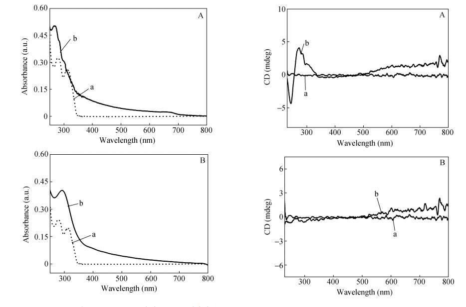 這個位置對應于香豆素基團的吸收帶,因此歸屬于香豆素基團的CD信號。在CODA單體LB膜中,香豆素基團間形成了緊密的H-聚集,而且由于相鄰兩個芳香環受到π-π體系間靜電斥力的影響以"面對面"重疊排列的可能性很小,通常存在錯位。在單分子膜壓縮過程中,香豆素基團間強烈的π-π堆積形成螺旋排列,并且由于過度擠壓,體系鏡面對稱性被打破,某一方向的螺旋堆砌結構在LB膜中占主導地位,從而產生超分子手性。需要指出的是,CODA單體LB膜手性信號強度和方向與沉積過程密切相關,即不同批次制備出的LB膜手性信號強度大小不一甚至是方向相反。換句話說CODA單體LB膜形成的螺旋結構方向是隨機的。但是對于CO2DA單體LB膜,分子排列較松散,存在局部的缺陷,香豆素基團間無法形成緊密有序的規整排列,沒有觀察到明顯的CD信號(圖5(B))。