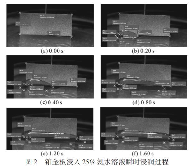 圖2 鉑金板浸入25%氨水溶液瞬時(shí)浸潤過程
