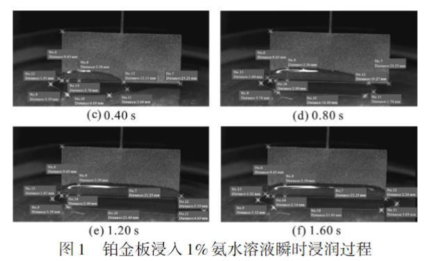 圖1 鉑金板浸入1%氨水溶液瞬時(shí)浸潤過程