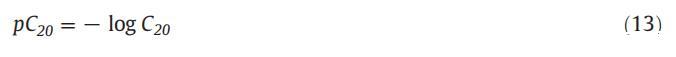 為了計算吸附效率,重要的是要知道產生最大吸附量的兩親分子的摩爾濃度。最大吸附量出現在表面張力降低到20mn·m時?1[64]和C20是該點的摩爾濃度。用pC20表示的兩親分子的吸附效率如下所示: