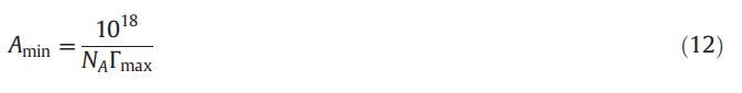 可用公式(12)[63]計算每個分子的最小面積: