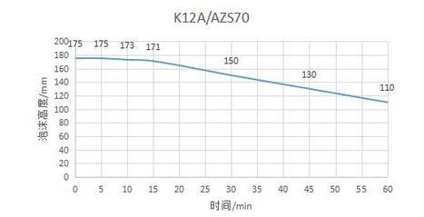 起始0min的泡沫高度即為該表活的發泡力,高度越高,則表示其起泡力越強;穩泡力用5min、10min、30min、45min、60min泡沫高度作曲線圖形式呈現其規律;泡沫維持時間越長,表示其穩泡力越強。