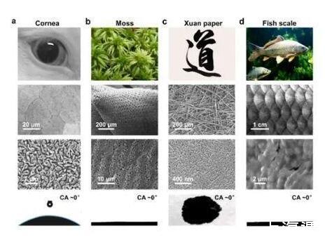 文章介紹了經(jīng)過億萬年進(jìn)化后自然界中選擇留下的各種優(yōu)異超鋪展表面,包括動物角膜、宣紙等。自然界中超鋪展表面的優(yōu)異性能直接決定了其正常作用的發(fā)揮甚至其生理功能。這些自然表面均使用了微納復(fù)合的多尺度結(jié)構(gòu)來實現(xiàn)超鋪展性能;從分子尺度的表面自組裝水分子結(jié)構(gòu)引起的新的親疏水界線(65°)到納米結(jié)構(gòu)和微觀結(jié)構(gòu)在超鋪展過程中的宏觀各自作用,綜述了超鋪展本質(zhì)機理研究的最新進(jìn)展;進(jìn)一步總結(jié)了常用的超鋪展表面制備方法、介紹了超鋪展表面的應(yīng)用領(lǐng)域,提出了超鋪展體系,總結(jié)了該領(lǐng)域存在的挑戰(zhàn)。