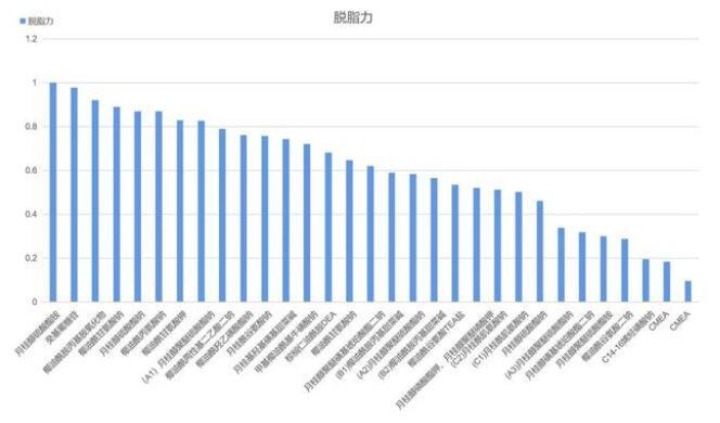 從上述數(shù)據(jù)中可以看出,在規(guī)定條件下,脫脂力最強的是月桂醇硫酸酯銨,脫脂力最弱的是兩款CMEA;
