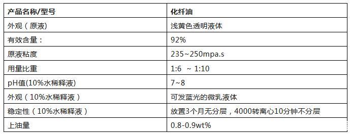 本產品為無色、無異味、環保型黃色液體,可以很好地調劑化學纖維的摩擦,提高油膜強度,保護纖維、防止纖維對設備的磨損和銹蝕;對化學纖維的集束性好,提高油在纖維上的附著性,化學纖維在紡絲時不會紊亂;抗靜電性能好,化學纖維不容易因為靜電而斷頭;乳化性能好,化纖油與水1:10的稀釋可達到微乳狀態,有良好的穩定性;耐熱性好,高溫下不發煙,不凝聚。