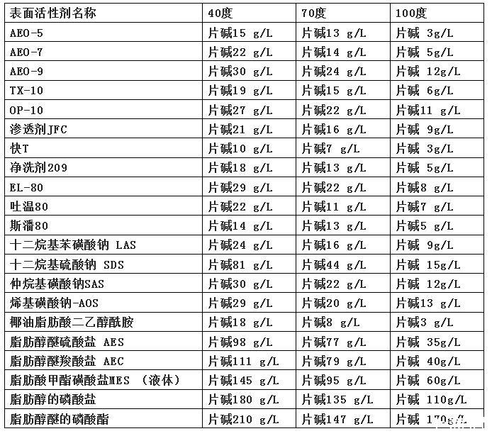 概述:目前市場上常見的各種表面活性劑,包括非離子、陰離子最常用兩大類的耐堿、凈洗、除油和除蠟性能的比較。