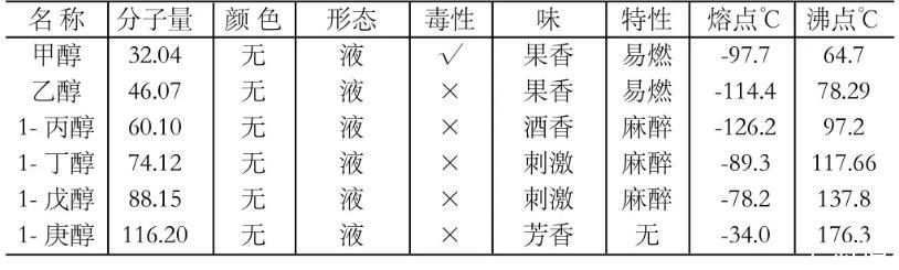 由于不同液態(tài)醇類(lèi)的液態(tài)性質(zhì)不同,其表面張力變化的程度如下表:
