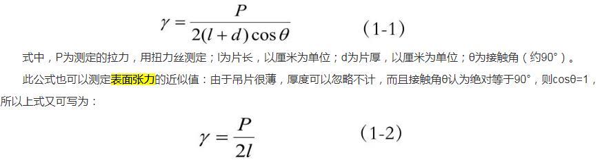 此公式也可以測(cè)定表面張力的近似值:由于吊片很薄,厚度可以忽略不計(jì),而且接觸角θ認(rèn)為絕對(duì)等于90°,則cosθ=1,所以上式又可寫(xiě)為: