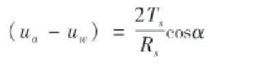 式中,(ua-uw)為基質(zhì)吸力,Pa;Ts為水—氣分界面的表面張力,N m-1;Rs為曲率半徑,m;α為接觸角,°。